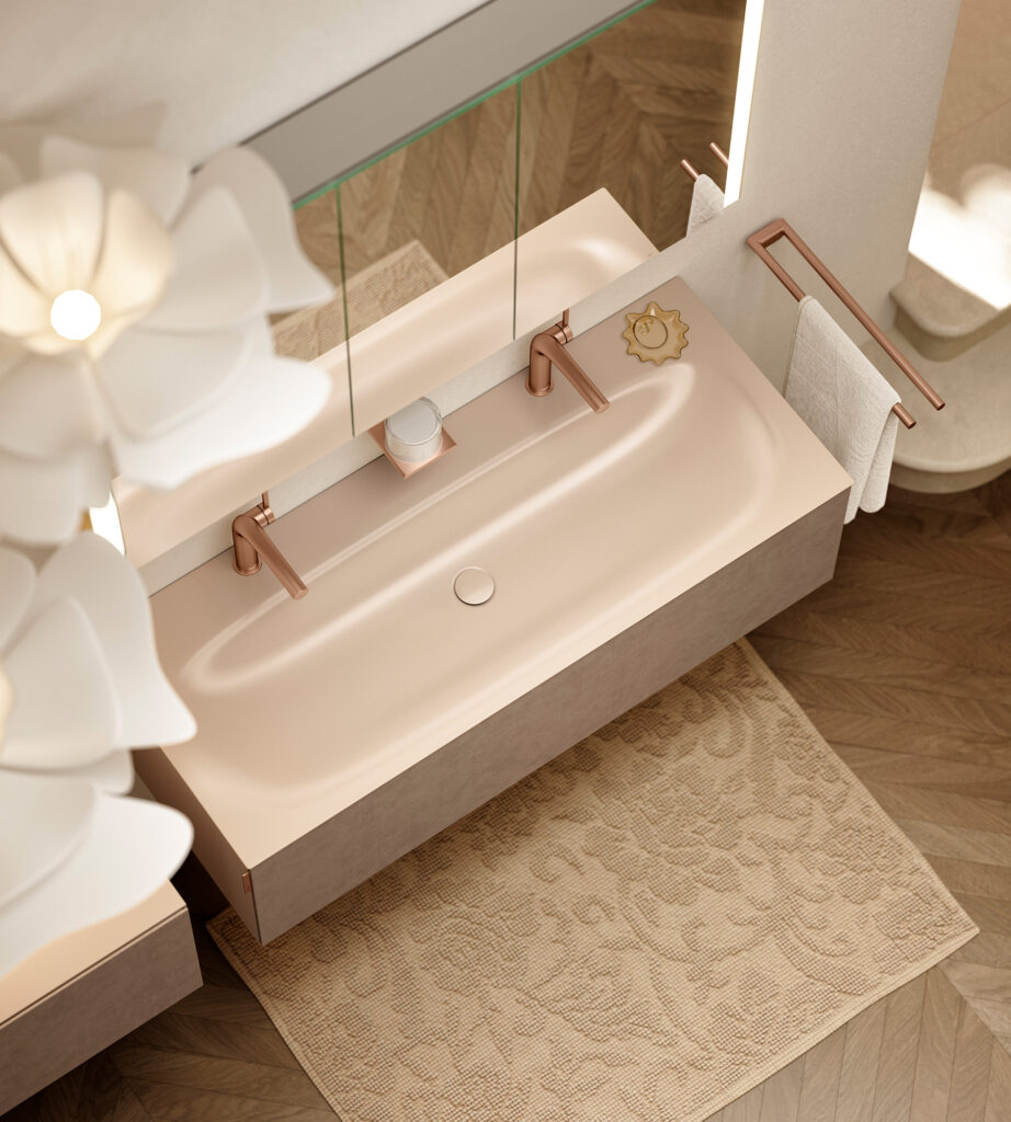Das durchdachte Farbkonzept der EDITION 11 ART setzt sich nicht nur in den großen Designelementen fort, sondern reicht bis ins kleinste Detail. Der seitliche Griff an den Möbeln ist in den gleichen Oberflächen erhältlich wie verschiedene Armaturen und Accessoires von KEUCO: in Rotgold gebürstet, Messing gebürstet, Titanschwarz gebürstet, Aluminium-finish und Edelstahl-finish, bis hin zu tiefem Schwarz matt oder verchromt. Mit den darüber hinaus verfügbaren PVD-Oberflächen entsteht eine durchgängige visuelle Linie, die das gesamte Badezimmer aufwertet.