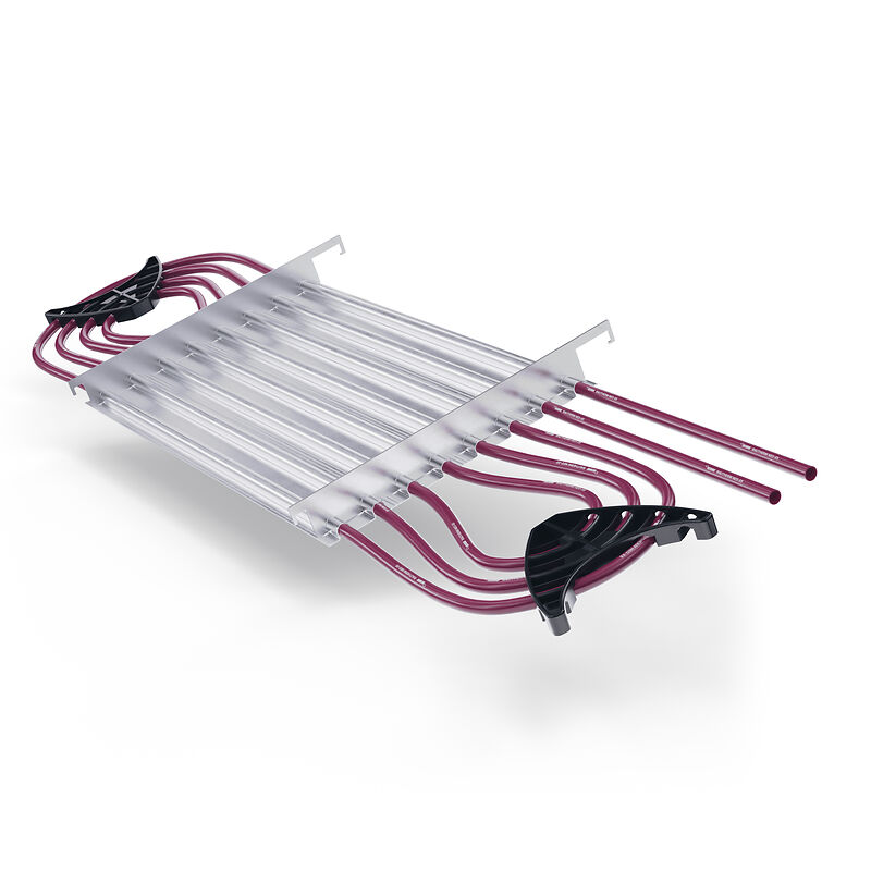 Das System verfügt über asymmetrische Modulhalter, mit denen sich die Deckenmodule einfach und schnell in die Unterkonstruktion einhängen lassen. Das sorgt auch für eine echte Gewerketrennung zwischen Installation und Trockenbau und verkürzt gleichzeitig den Installationsvorgang. Die Montage des Systems mit der Anbindung wird vom Fachgewerk Sanitär, Heizung, Klima (SHK) übernommen. Die vom Gewerk Trockenbau erstellte Metallunterkonstruktion muss nachträglich nicht mehr angepasst werden, denn die Asymmetrie des Modulhalters bietet genügend Spiel, wodurch das Einhängen problemlos möglich ist.